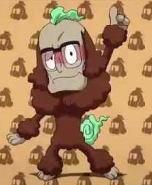 É um cão com um rosto humano. Ele tem uma pelagem marrom, couro bege, um redemoinho verde acima de sua cabeça e o outro como uma cauda com pequenos detalhes em verde escuro. Ele também tem pequenas pernas com almofadinhas como um cão poodle. Ele usa um par de óculos de pasta preta. Ele tem uma faixa vermelha no rosto e seu olho esquerdo é parcialmente fechado.